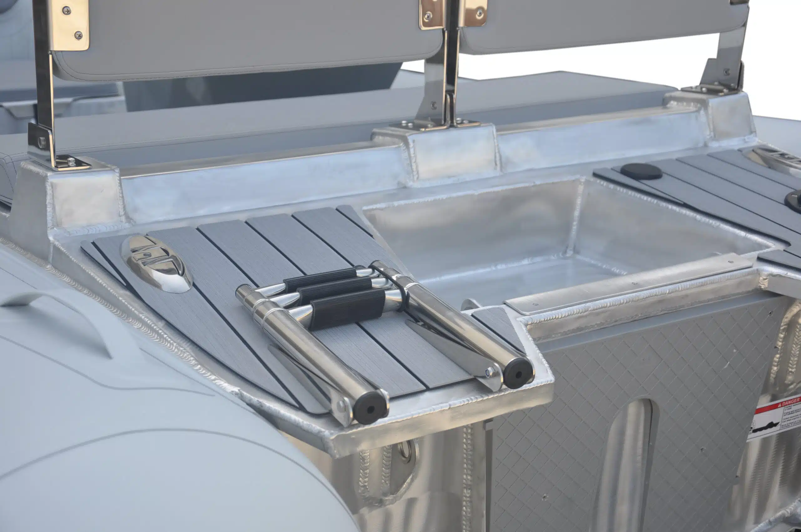Our chrome-free Pretreatment and Powder Coating Technology offers a superior coating adherence. The Alumina also can be requested uncoated, which means less maintenance when it is frequently used on areas with underwater obstructions. These include lifting and towing eyes vertically positioned to avoid these from bending, reinforced transom knees and a large squared aluminum engine rest support.
