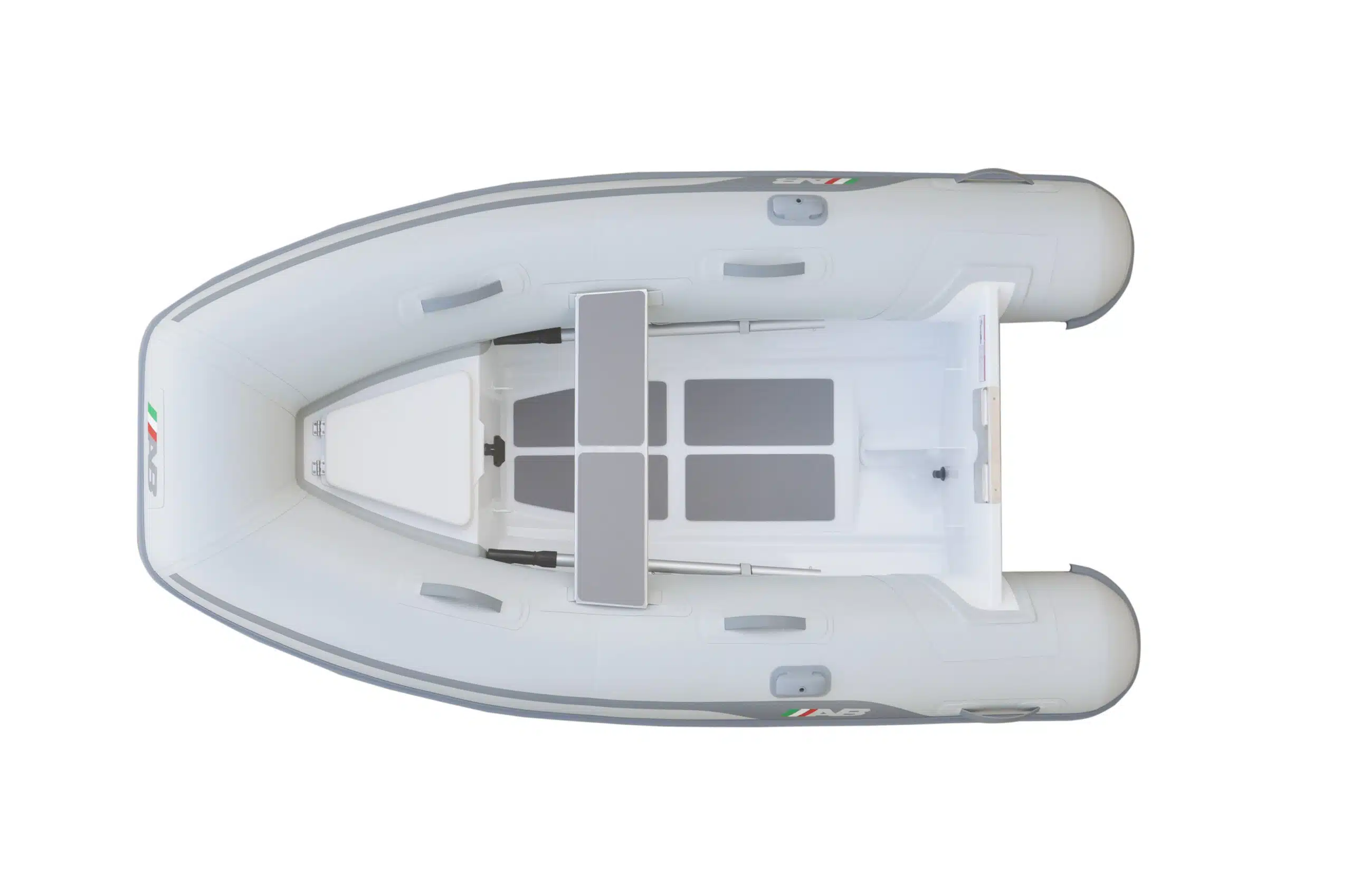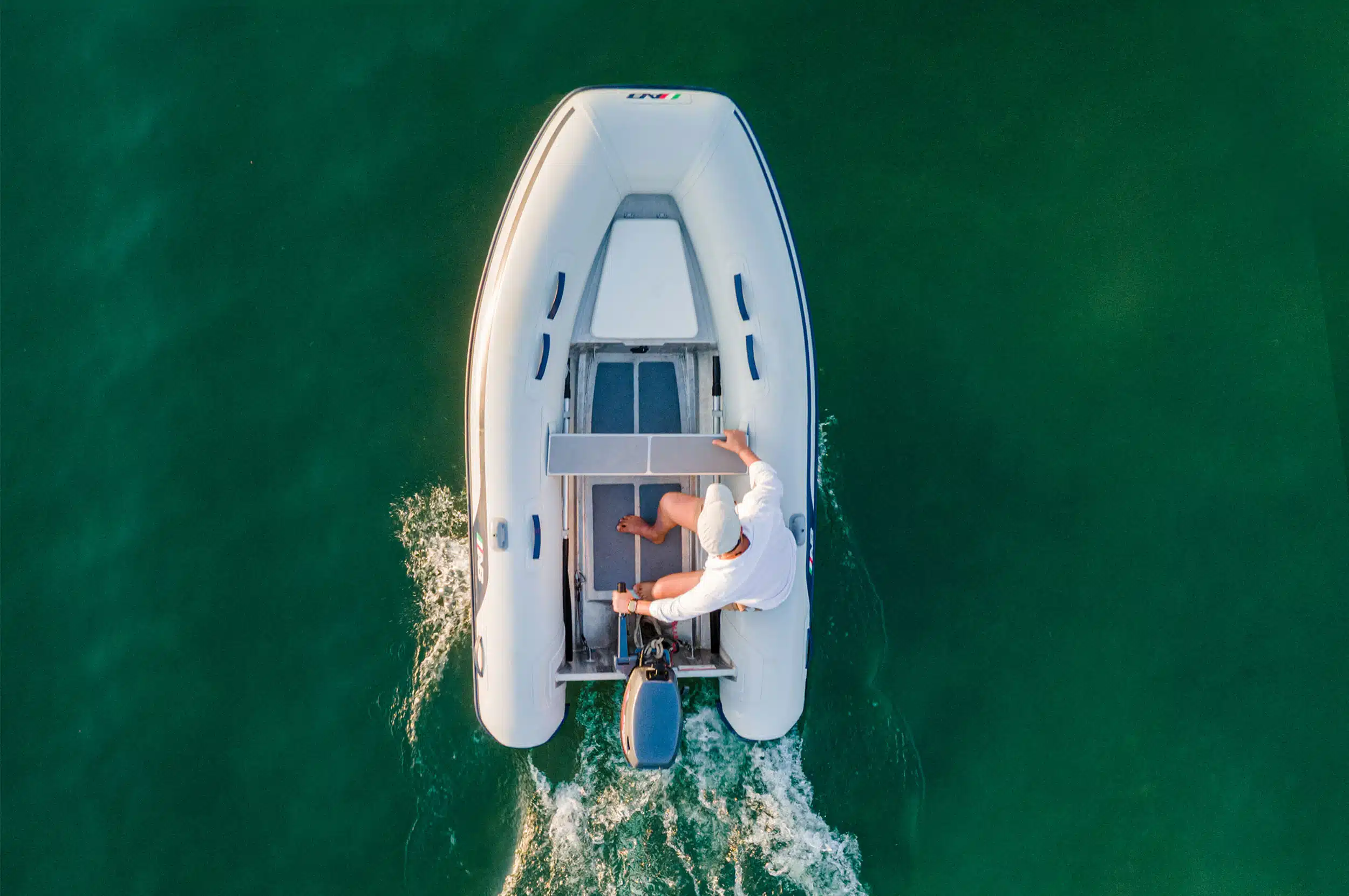 The Lammina AL easily cuts through wakes and chop with a lower horsepower than fiberglass tenders. A full-length rubber keel protector enables you to cruise through unknown areas without worry, and its double layer floor guarantee a dry deck and a stable ride. The bow locker serves as a convenient boarding step and comfortable seat for guests. You can also use it to store a portable fuel tank where the fuel line passes underneath the floor, leaving the deck free of obstructions. As an important key feature, the models from 8 to 10ft come with an 820 CSM Orca® Coated Fabric, it offers the thickest and strongest fabric in their segment which brings extra protection. The versatile full-sized Lammina AL has a modular design with customizable seating and console choices.