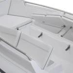 Our thoughtfully redesigned line features the finest maneuverability, stylish stainless-steel lateral rails, cupholders, built-in coolers, ample storage, elegant upholstery and windshield made to keep up with the adventure-seekers while providing comfort to those seeking relaxation. From the cushioned bow area to the convenient low helm station and its ergonomically positioned throttle, this handcrafted model, which delivers extra safety for children and pets, is specially designed for comfort and elegance