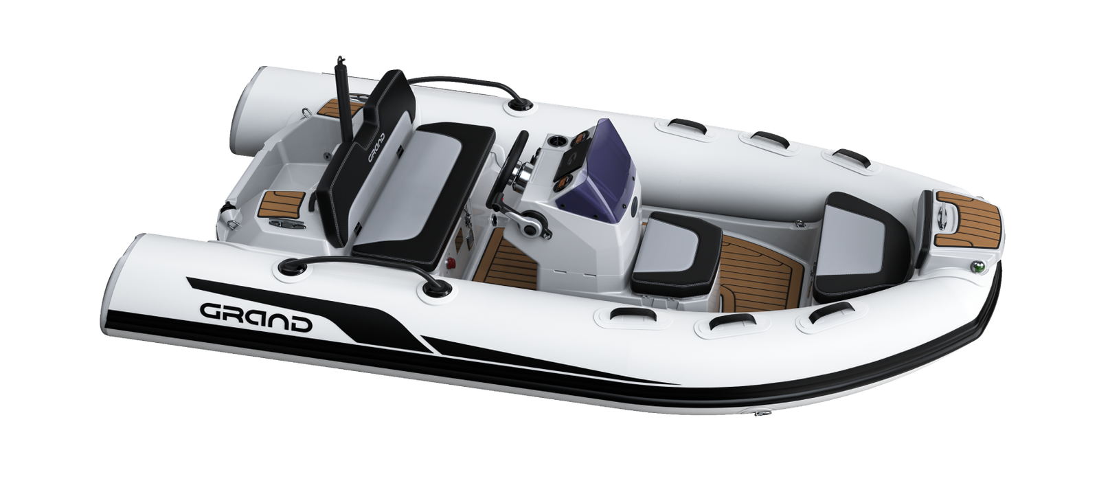 Updated and neat. A 3.6m/12ft tender boat with motor up to 50HP. The mid sister in our luxury yacht tender family, G380N is a remastered version of our timeless 380 model. Adopting its lightweight build and introducing a modern and smart design, this semi rigide now delivers more power, more functionality and comfort, spacious dashboard for up to 7” screen and more options, redefining luxury tendering.