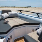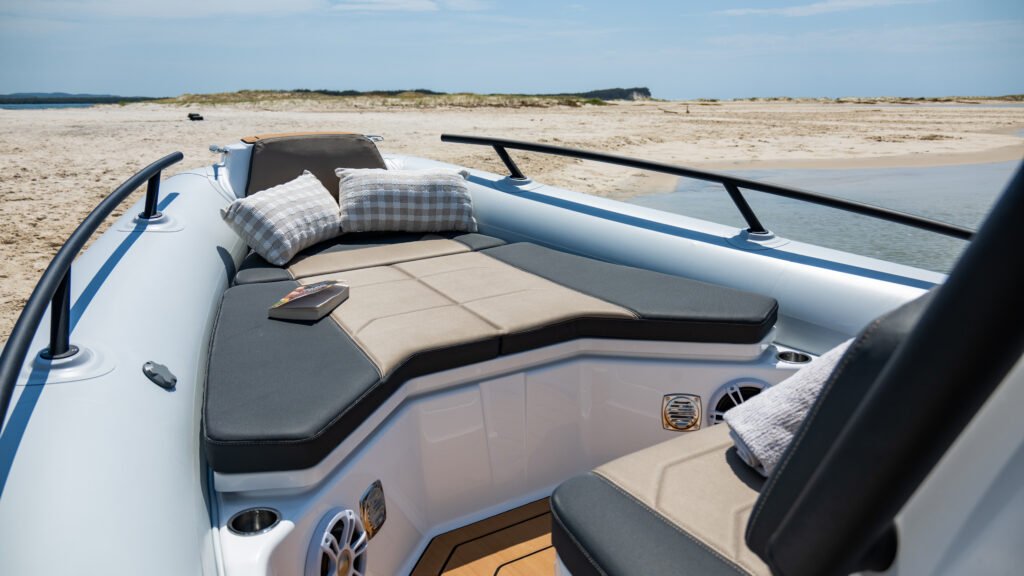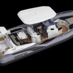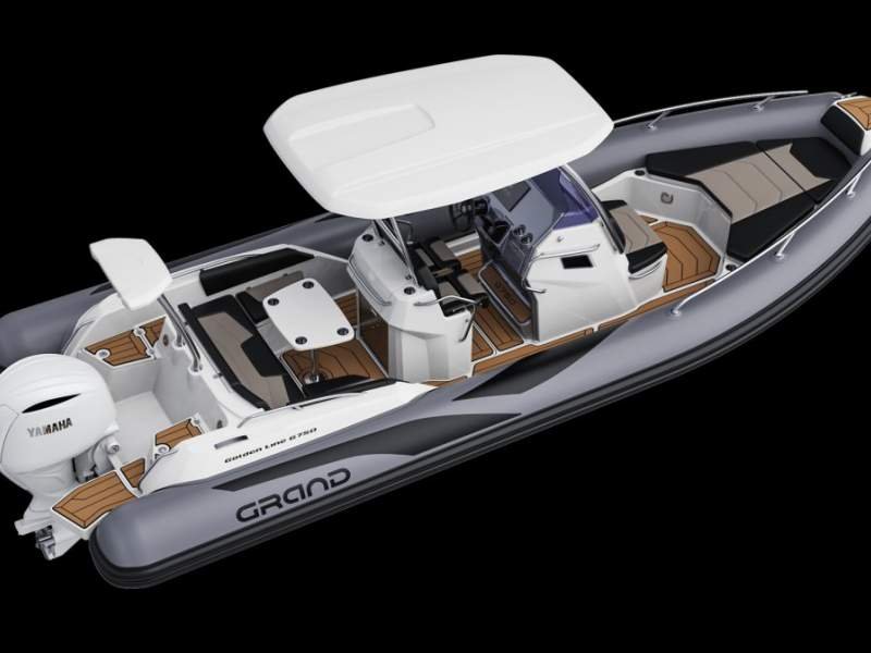 The extensive specification and options list includes features customers expect from their Grand RIBS including a U-form rear sofa-style seat that now includes a boarding passageway, stainless steel bow rails, a newly designed centrally-positioned steering console with internal space for a marine WC, a new 260 liter built in fuel tank, a spacious and expandable bow sundeck, Grand’s stylish waterski towing arch, accommodation for up to 10 passengers and much more!
