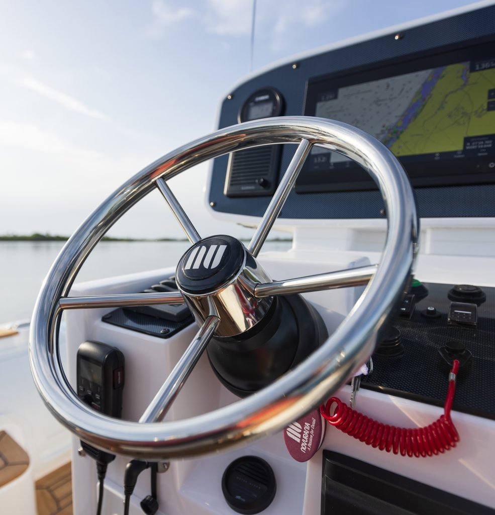 The Catamaran 24 – powered by a 250 horsepower outboard or diesel stern drive engine – reaches up to 50 mph with an impressive acceleration. Its twin hull design guarantees great space for transporting people, equipment, and cargo on the water, beach as well as dock.
