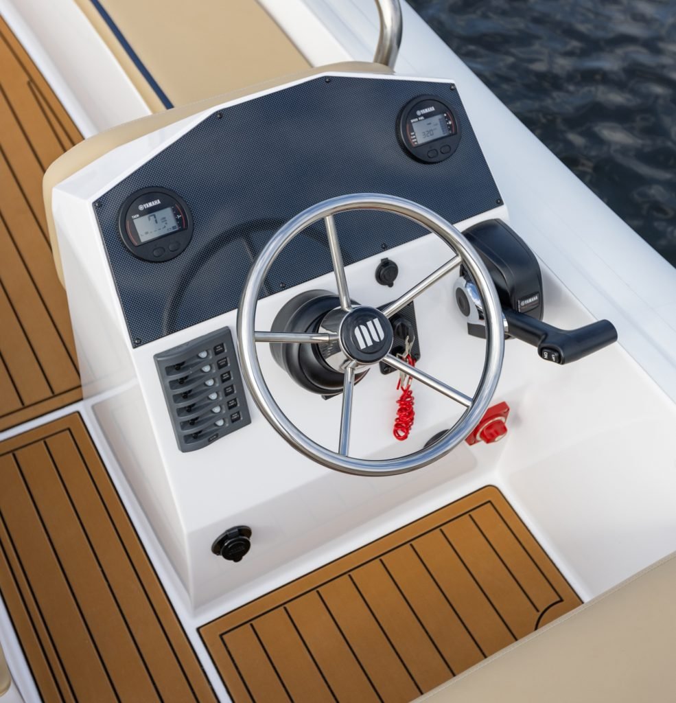 Yacht quality stainless steel hardware throughout: cleats and railings